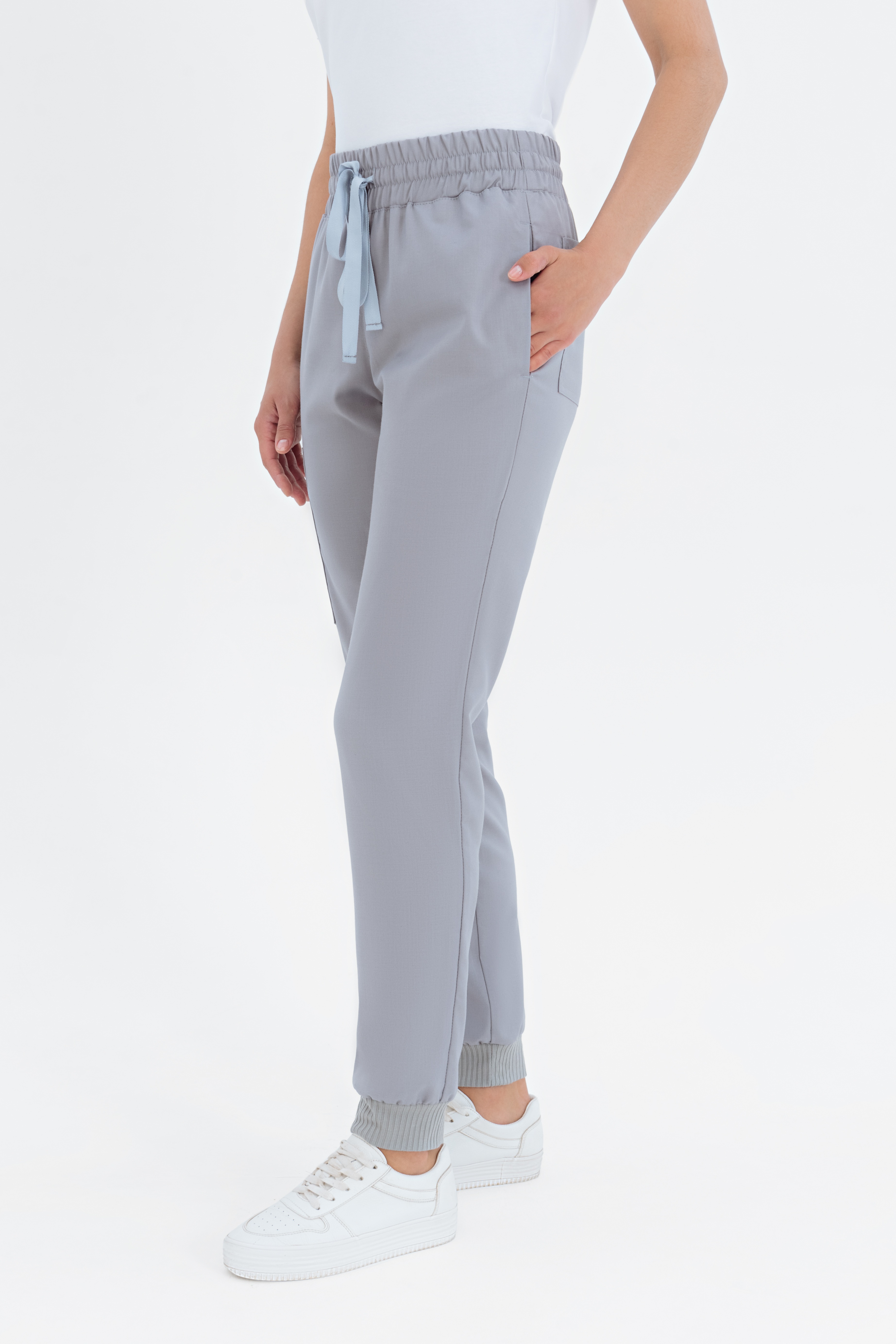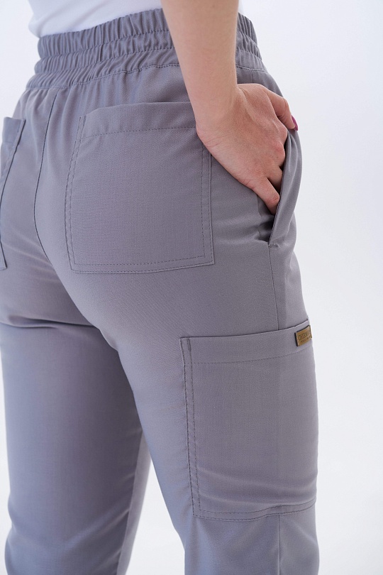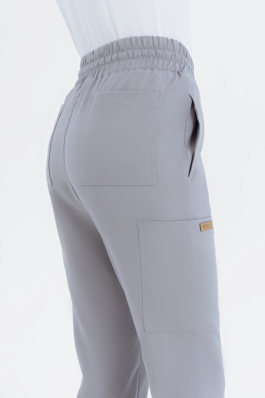 Базовые женские брюки-джоггеры займут достойное место в профессиональном гардеробе. Удобство и стиль - основные характеристики данной модели. Широкий, комфортный пояс обеспечивает свободу даже в напряжённой рабочей обстановке. Низ брючин собран на мягкую трикотажную манжету. Пять вместительных карманов позволяют иметь под рукой все необходимое и даже больше. Два основных кармана в боковых швах, два задних кармана лаконичной формы и одно дополнительное вместительное отделение на правом бедре. Не нужно делать выбор между "красиво" и "удобно", ведь эта модель соответствует всем критериям.