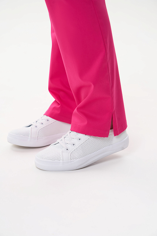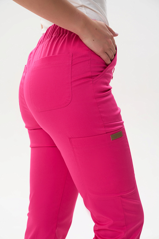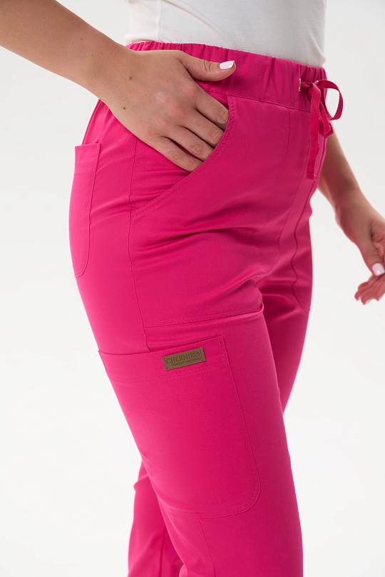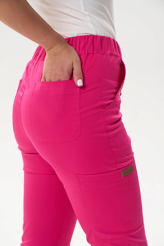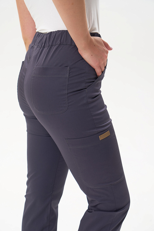 Базовые медицинские брюки на эластичном поясе, с большими карманами и немного зауженным к низу силуэтом. Выполнены из мягкой комфортной ткани с добавлением стрейчевых волокон, удобная и простая в уходе модель.