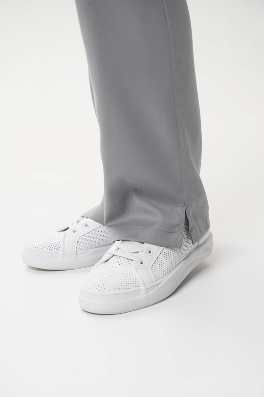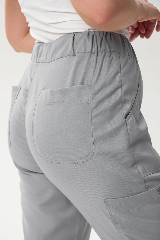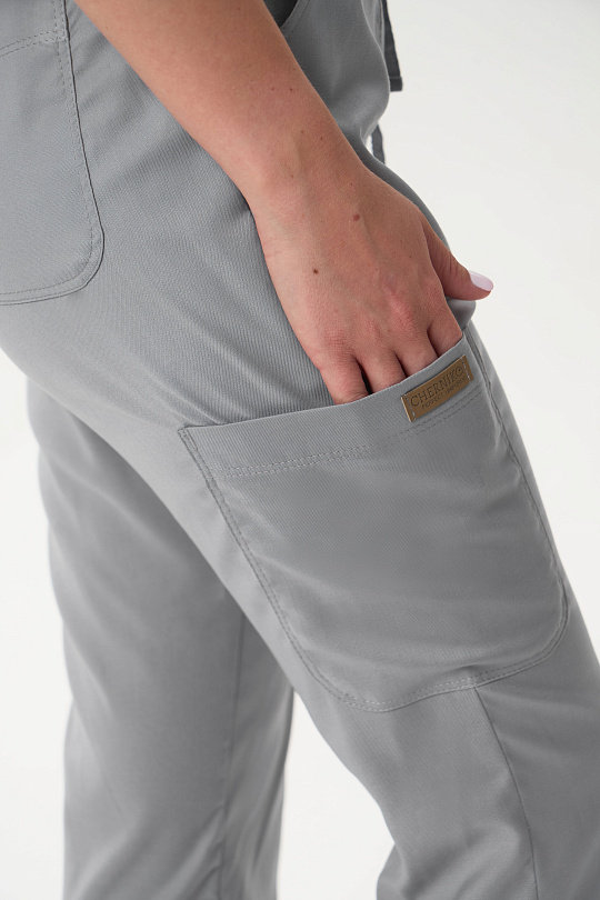 Комфортные брюки CH030 с идеальной посадкой, благодаря слегка зауженному к низу крою и мягкому эластичному поясу. Стильный и функциональный элемент кроя - большие основные карманы интересной формы, два дополнительных кармана с широкими планками и декоративной патой с полукольцом и два задних кармашка. По низу брючин небольшие разрезы, что позволит комфортно сочетать брюки с объемной обувью.