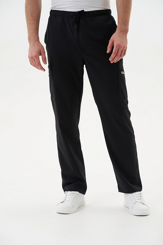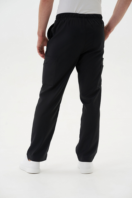 Классически прямые брюки для комфортной работы с поясом на резинке и имитацией гульфика, дополнены шнурком для регулировки обхвата талии и всевозможными карманами, подчас совершенно необходимыми доктору на работе. Брючные карманы с наклонным входом. Накладные карманы по бокам и сзади подойдут под любой комплект аксессуаров – телефон, ножницы, ручка…