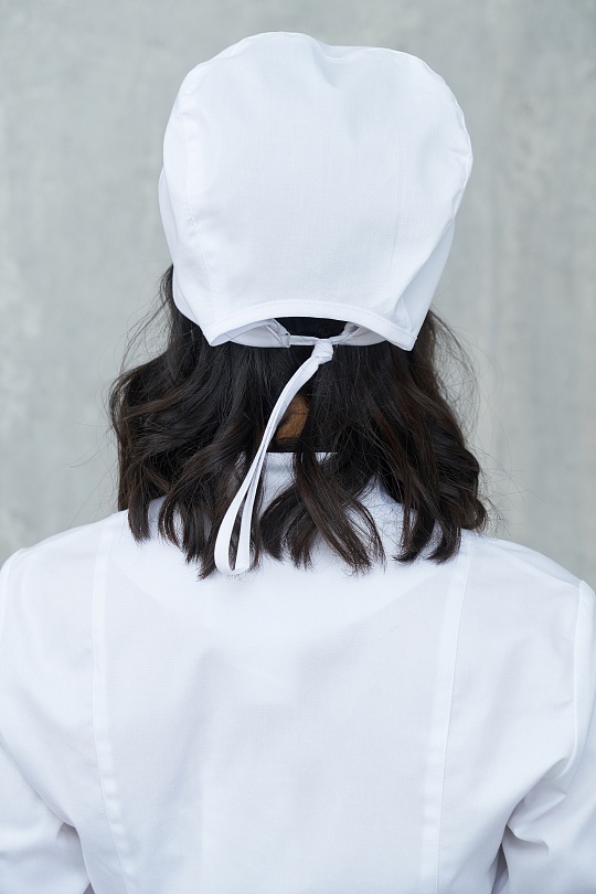 Убор головной с притачным отворотом. Состоит из боковой стенки и донышка. Объем колпака регулируется завязками.