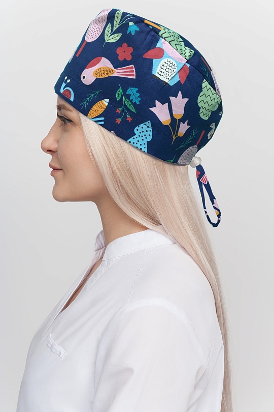 Головной убор (колпак) состоит из центральной части (донышка), боковой части (стенки) , которая сужается сзади. Сзади колпака вырез в виде капли-которая обрабатывается обтачкой в которую продернута эластичная шляпная резинка с фиксатором
