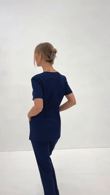 Куртка женская, полуприлегающего силуэта, без застежки, горловина с запахом, разрезами в боковых швах. Перед с отрезным поясом по талии, рельефами от проймы до пояса, нижними карманами. Cпинка с отрезным поясом по талии, рельефными швами от проймы до пояса и от пояса до низа. Рукава втачные, одношовные, короткие. По поясу продернут рулик, выходящий с левой стороны куртки и регулирующий объем по талии. Брюки женские прямого силуэта с притачным поясом ,заготовленном на многоигольной машине. Средняя часть пояса без эластичной тесьмы. На передних половинках боковые карманы расположенные от талии до бока, в среднем шве имитация застежки с декоративной строчкой. По низу брюк в боковых швах расположен разрез. На правой передней половинке в районе кармана расположена силиконовая нашивка. Брюки женские, зауженные к низу, на притачном поясе со вставкой посередине и с продернутой эластичной резиной. Брюки с разрезами в боковых швах. На задних половинках брюк накладные карманы.