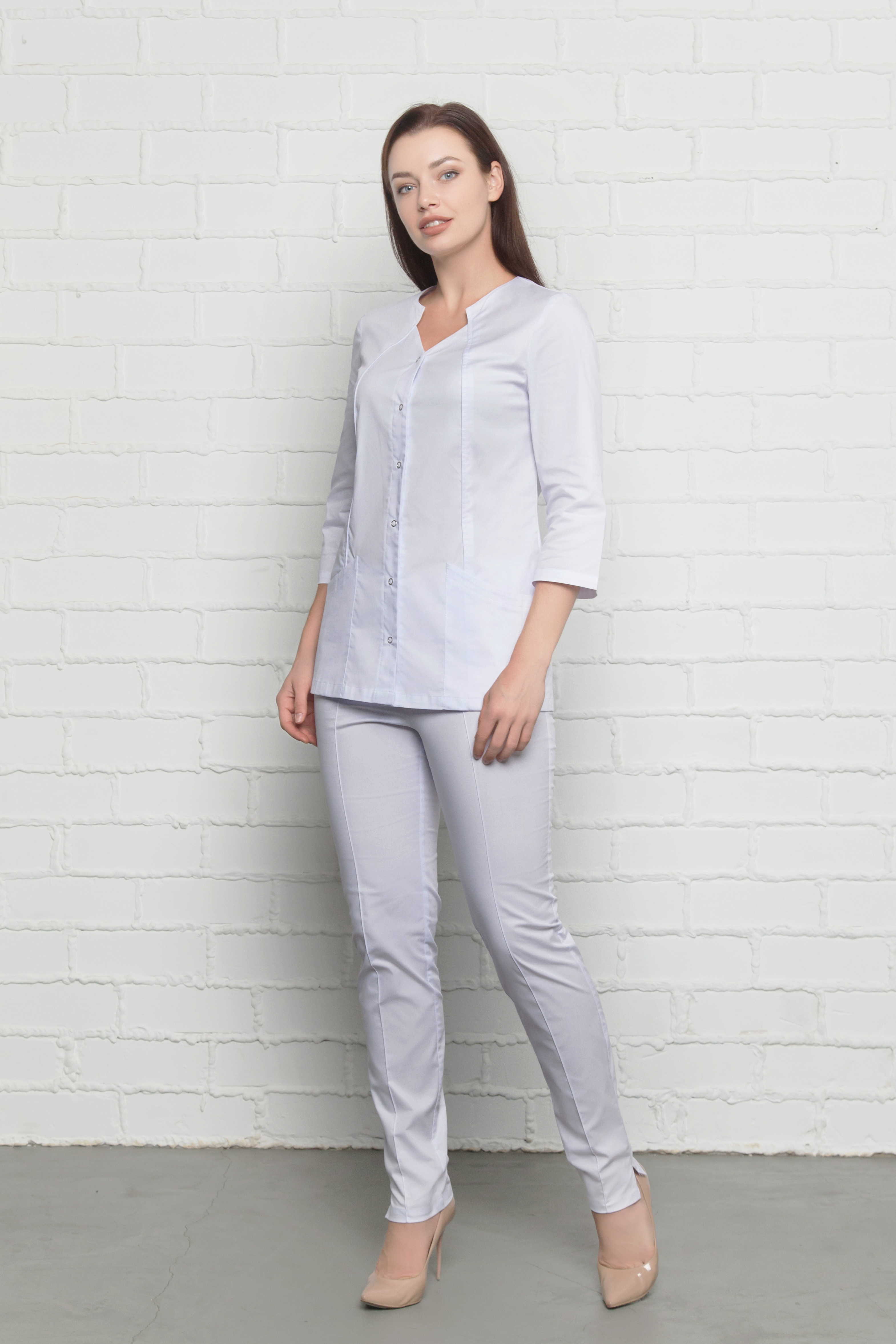 Плотность 150 г/м2 Гладить до 110° Машинная стирка 30° Не отбеливать , нельзя использовать хлорсодержащие моющие средства и стиральные порошки с отбеливателями. Ткань со стрейчем. Благодаря хлопку ткань комфортна, приятна на ощупь, мягкая, «дышащая». Полиэстер отвечает за долговечность и внешний вид — изделия из этой ткани выглядят всегда элегантно, аккуратно, привлекательно. Эластан делает медицинскую одежду из этой ткани чрезвычайно удобной.