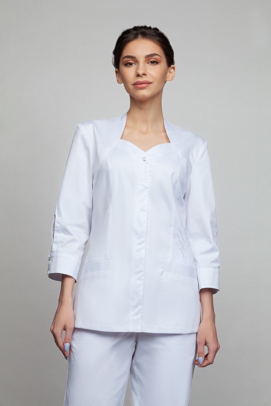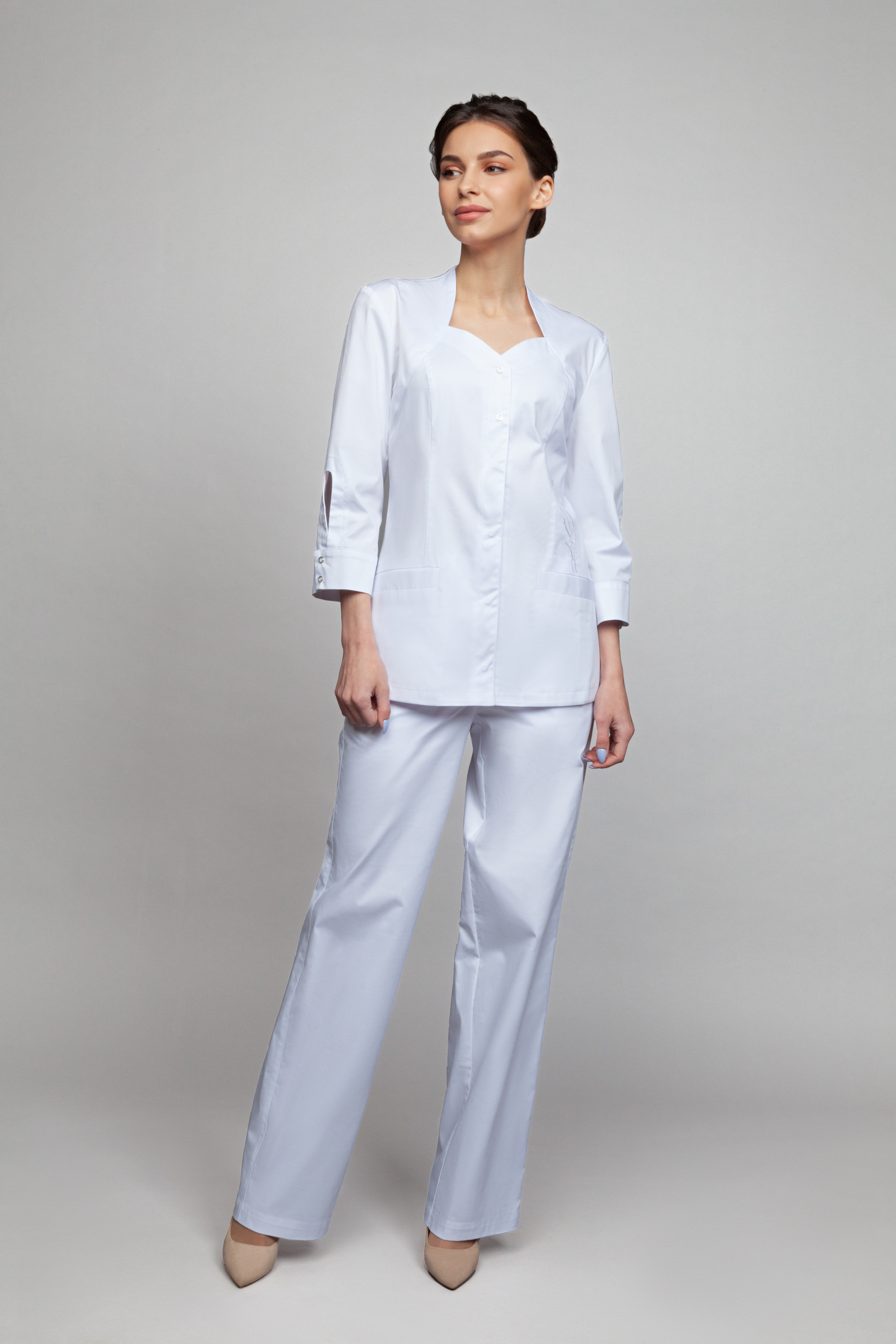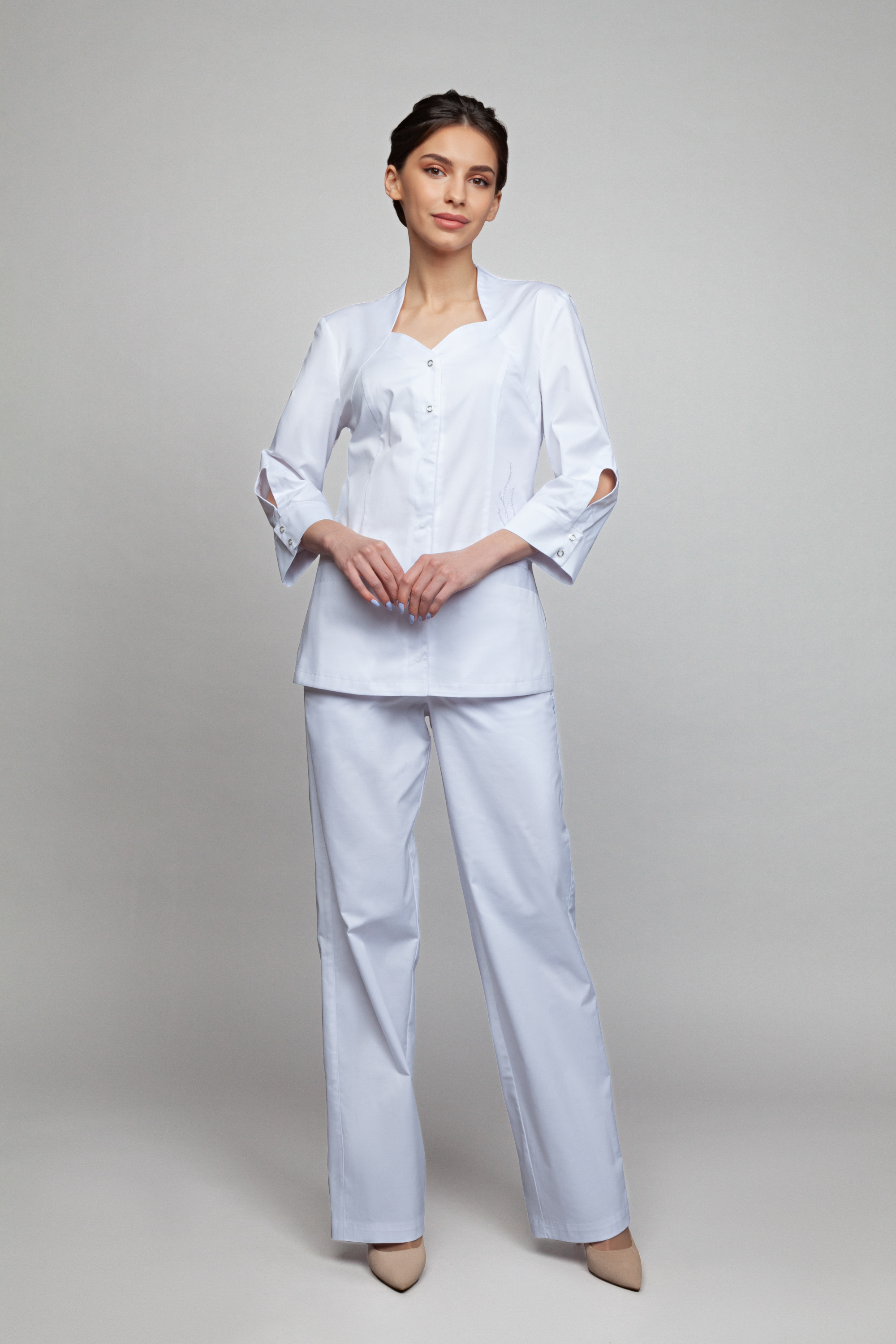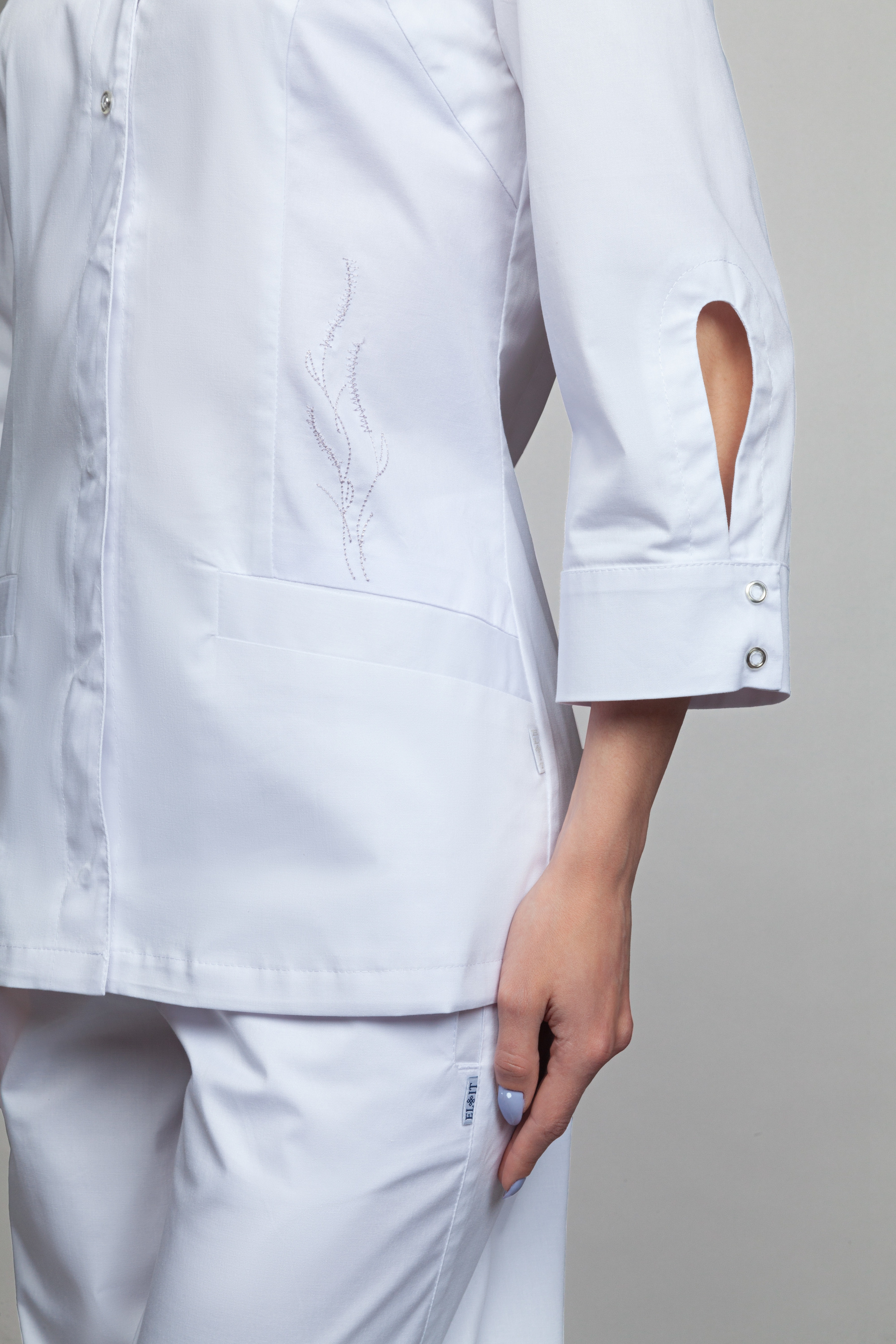 Плотность 150 г/м2 Гладить до 110° Машинная стирка 30° Не отбеливать , нельзя использовать хлорсодержащие моющие средства и стиральные порошки с отбеливателями. Ткань со стрейчем. Благодаря хлопку ткань комфортна, приятна на ощупь, мягкая, «дышащая». Полиэстер отвечает за долговечность и внешний вид — изделия из этой ткани выглядят всегда элегантно, аккуратно, привлекательно. Эластан делает медицинскую одежду из этой ткани чрезвычайно удобной.