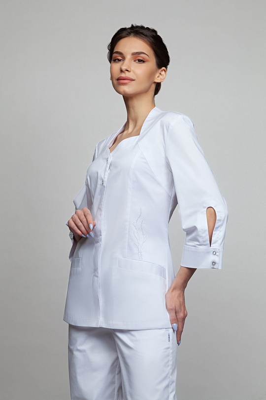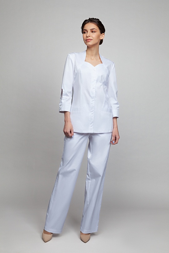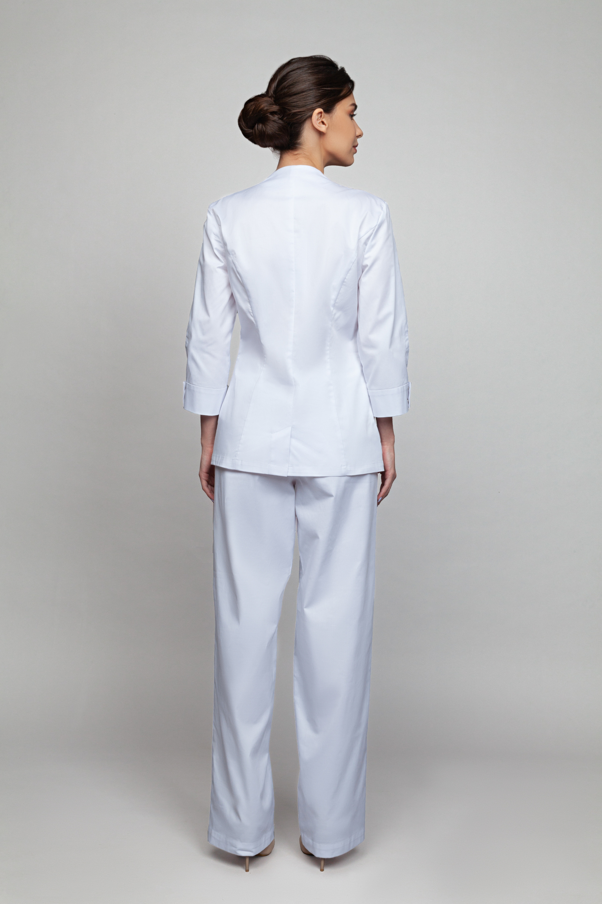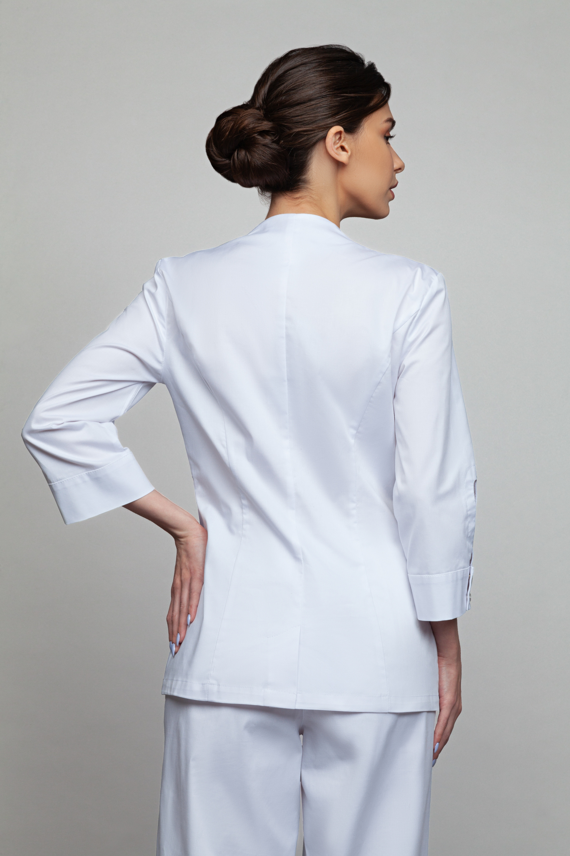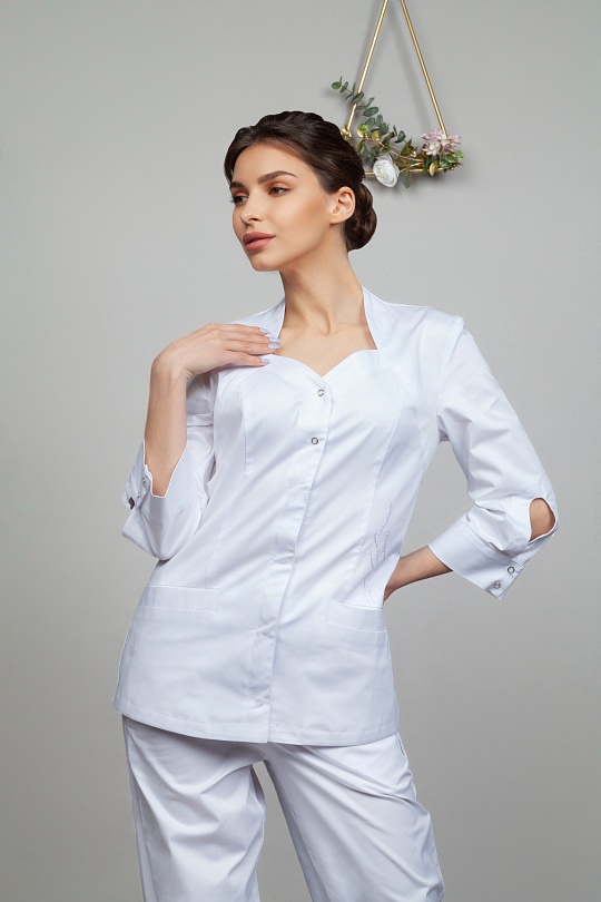 Плотность 150 г/м2 Гладить до 110° Машинная стирка 30° Не отбеливать , нельзя использовать хлорсодержащие моющие средства и стиральные порошки с отбеливателями. Ткань со стрейчем. Благодаря хлопку ткань комфортна, приятна на ощупь, мягкая, «дышащая». Полиэстер отвечает за долговечность и внешний вид — изделия из этой ткани выглядят всегда элегантно, аккуратно, привлекательно. Эластан делает медицинскую одежду из этой ткани чрезвычайно удобной.