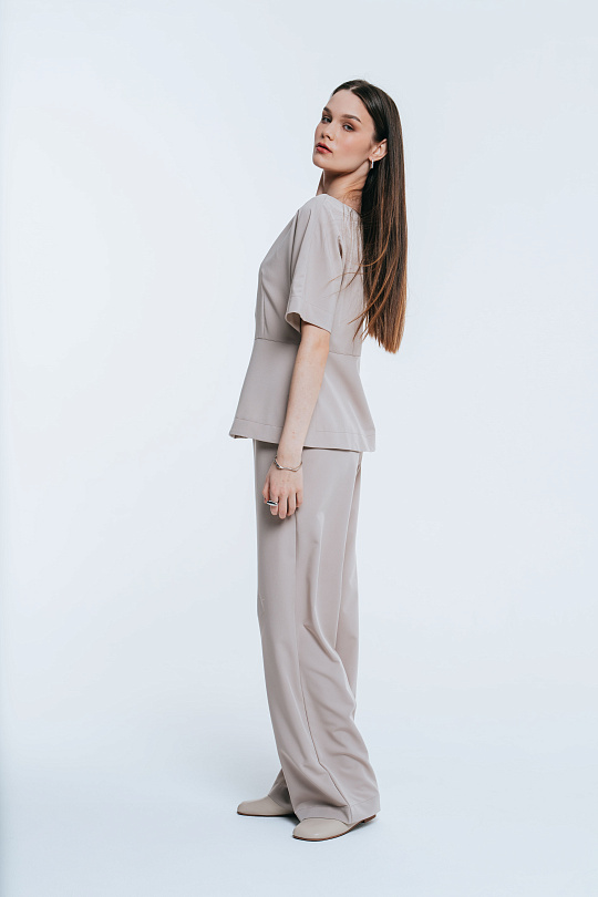 Прикосновение прохлады, приятное ощущение прикосновения плотного и одновременно легкого и нежного - все это дает ткань премиум класса - Агас. Нежное, гладкое волокно вискозы в составе ткани дает чувство комфорта и прекрасного внешнего вида. Ткань отлично держит форму, красиво драпируя складки - полиэстер в составе позволяет изделию долгое время сохранять форму и не вызывать трудностей в уходе. Плотность-180 г/кв.м.